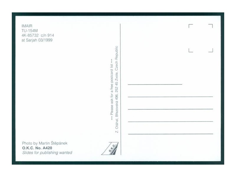 Airline Issue, Serie 1 - Foto 5; 6.0''x4.3'' (152x108 mm); condition very good