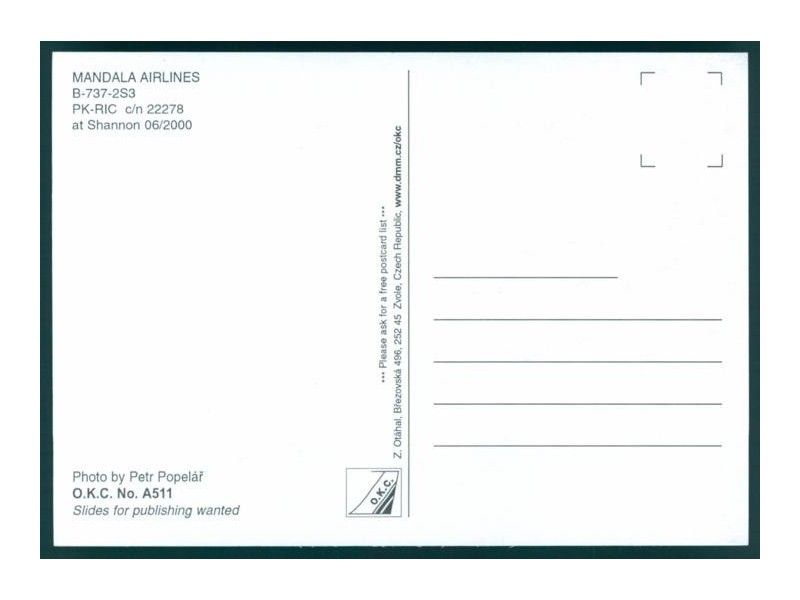 O.K.C. A1753; 5.8''x4.1'' (148x105 mm); new