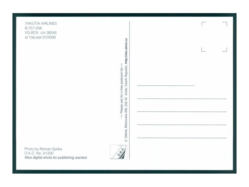 Airline Issue, Zurich offie (reprint 1989, smooth paper); 5.8''x4.1'' (148x105 mm); mint