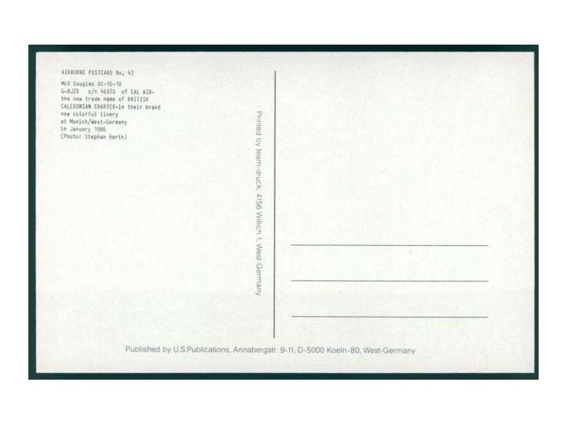 Airline Issue (by Edgar Medien, # 5.736); 5.8''x4.1'' (148x105 mm); condition mint