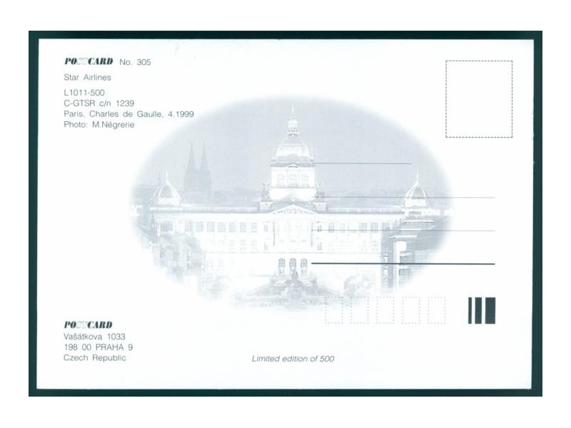 Airline Issue, Prague office; 5.9''x4.1'' (150x105 mm); new
