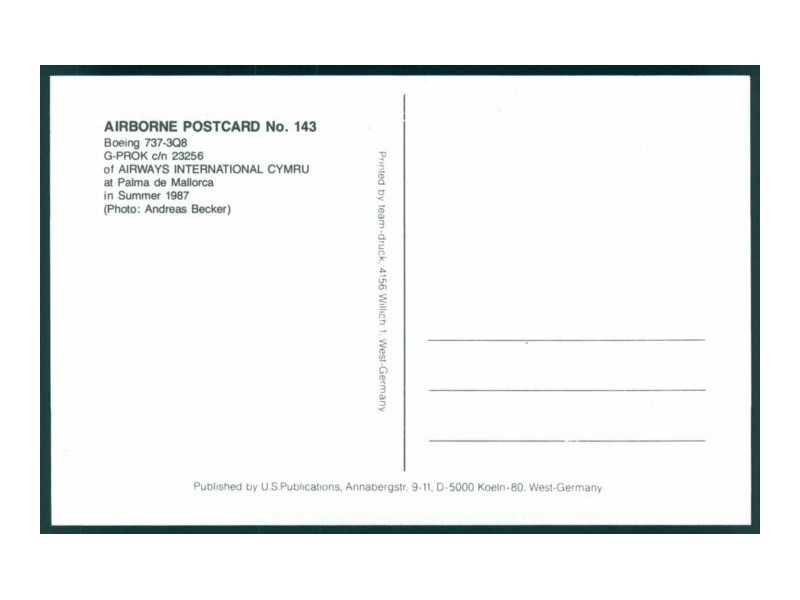 Wingtip Postcards W97; 5.5''x4.2'' (139x107); new
