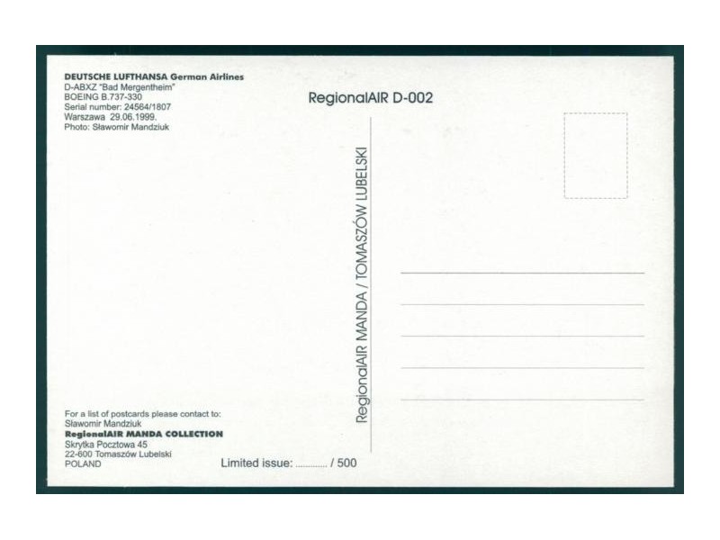 FlyingPhotos Special A340-20; 5.9''x4.1'' (150x105 mm); new