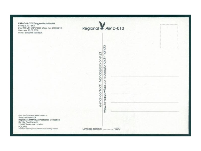 Taxiway Aviation Postcards 93-2006; 5.8''x4.1'' (148x105); new