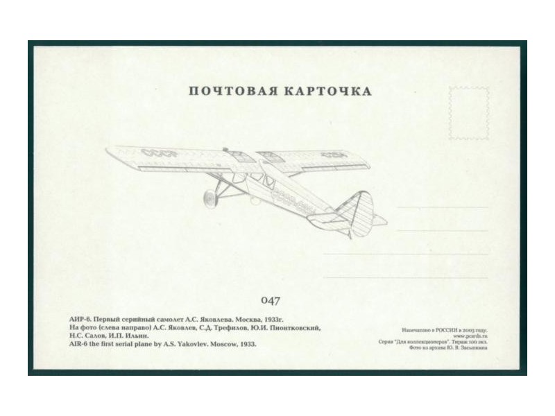 McQuaide Aviation Postcards FP6; 5.9''x3.9'' (149x99); new