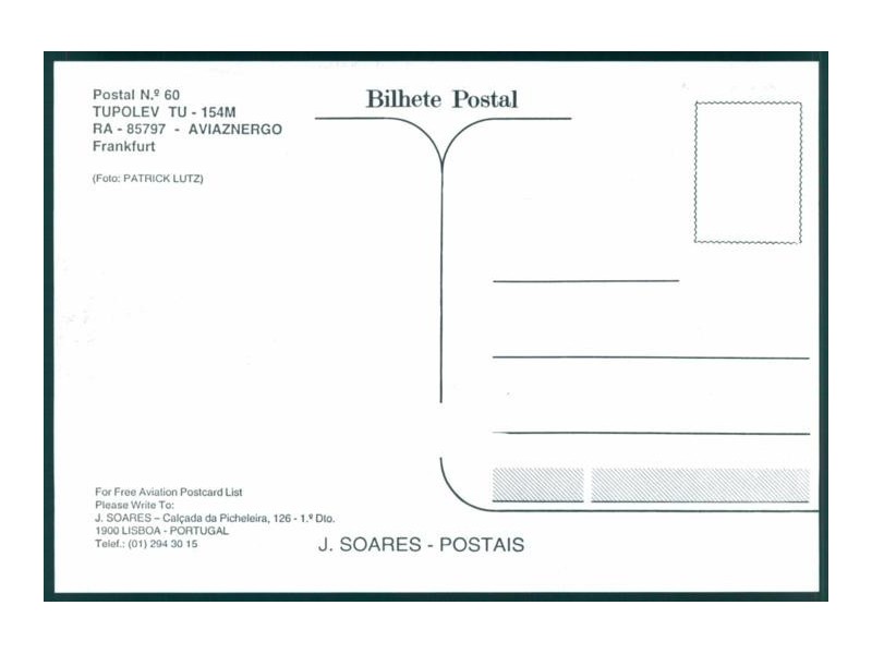 Airline Issue; 5.8''x3.9'' (148x100 mm); mint