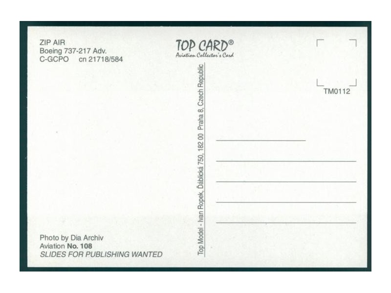 Airline Issue; 5.8''x4.1'' (148x105 mm); condition very good