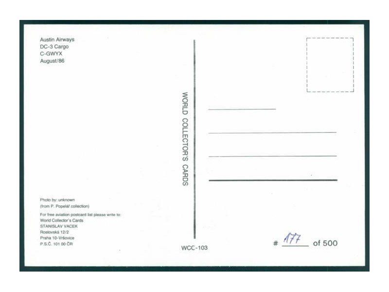 World Great Airlines WGA-035; 5.8''x4.1'' (148x105); new