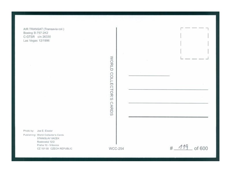 World Great Airlines WGA-775; 5.9''x4.1'' (150x105 mm); new