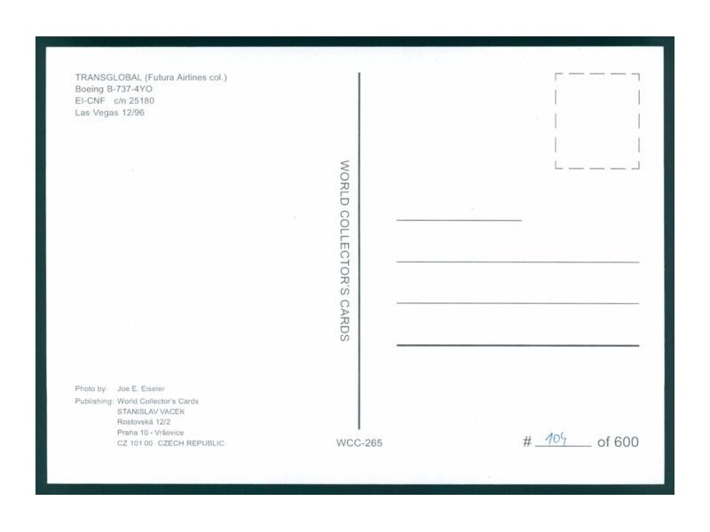 World Collector's Cards WCC-609; 5.8''x4.1'' (148x105); new