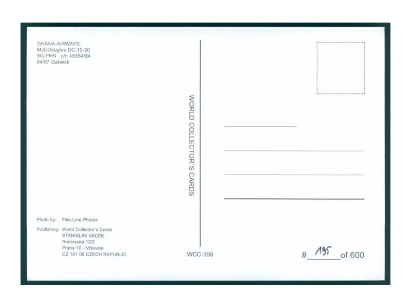 World Great Airlines WGA-468; 5.9''x4.1'' (150x105); new