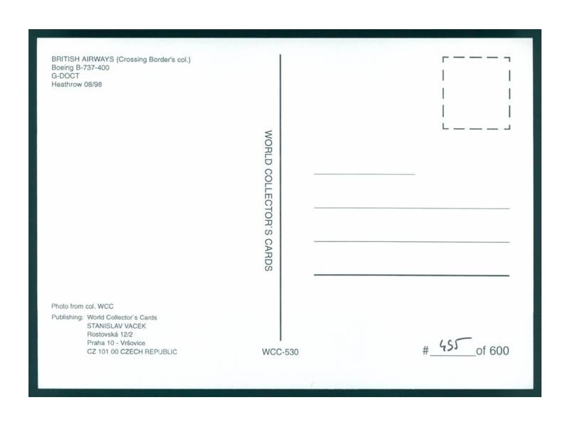 Civil Aircraft Postcards 68; 5.9''x4'' (151x101); new