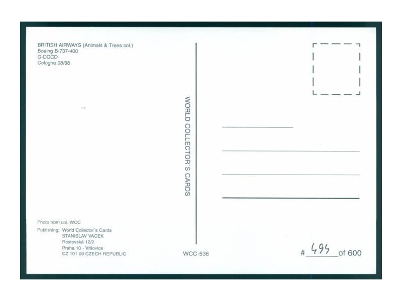 World Great Airlines WGA-012; 5.8''x4.1'' (148x105); new