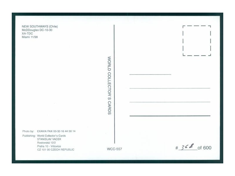 World Great Airlines WGA-836; 5.9''x4.1'' (150x104 mm); new