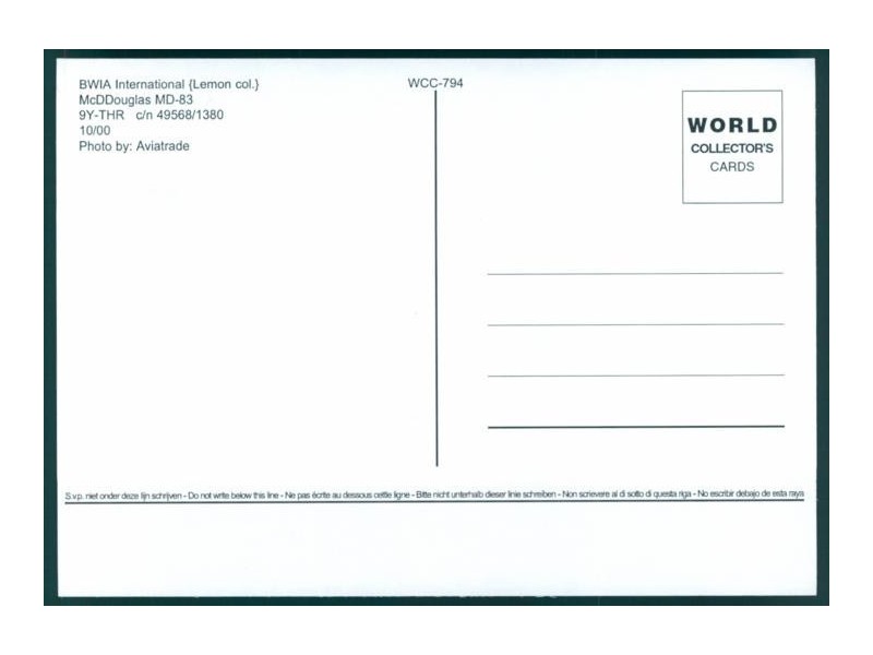 World Collector's Cards WCC-192; 5.8''x3.9'' (148x98); new
