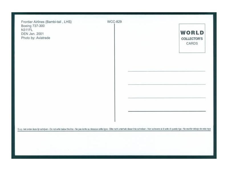 World Collector's Cards WCC-M-011; 5.8''x4.1'' (148x105); new