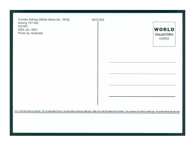 World Collector's Cards WCC-819; 5.8''x4.1'' (148x105); new