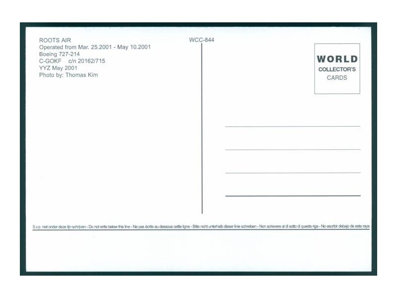 World Collector's Cards WCC-785; 5.8''x4.1'' (148x105); new