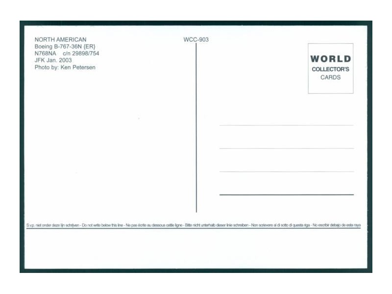 World Collector's Cards WCC-678; 5.8''x4.1'' (148x105); new