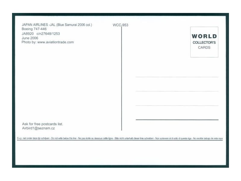 Airline Issue, JAL Fleet Postcard Book 4 - B777, page 23; 5.9''x4'' (149x101 mm); new