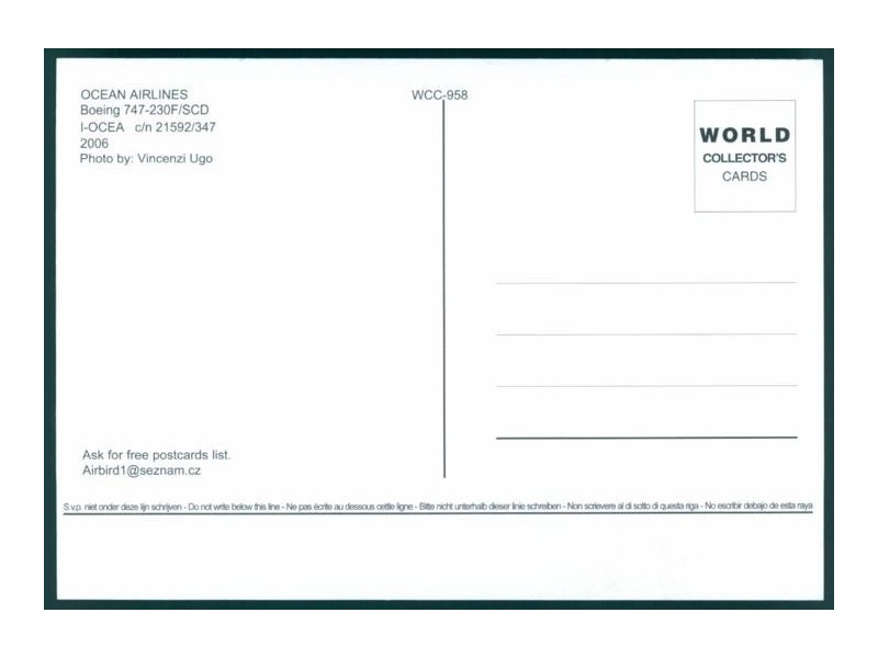 World Collector's Cards WCC-823; 5.8''x4.1'' (148x105); new