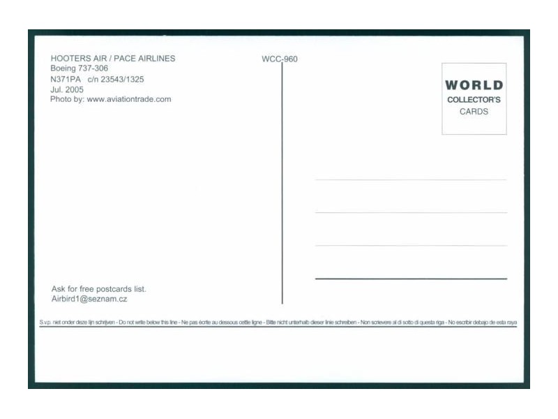 World Great Airlines WGA-259; 5.9''x4.1'' (150x105); new