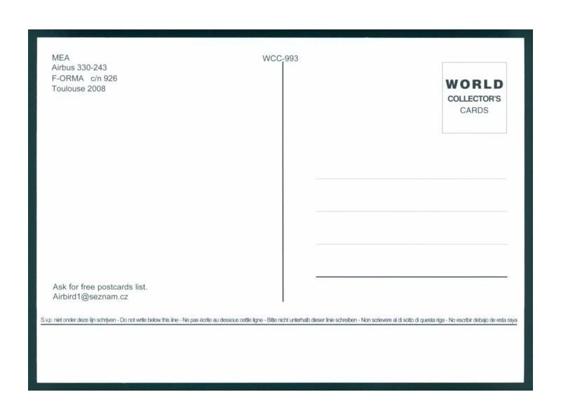 Wingtip Postcards W2; 5.5''x4.2'' (139x107); new