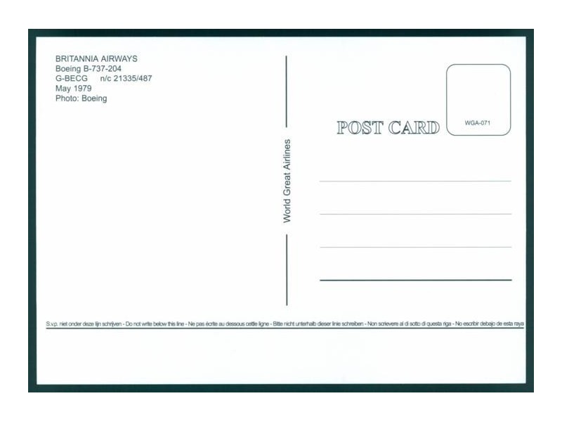 World Great Airlines WGA-737; 5.9''x4.1'' (149x104 mm); new