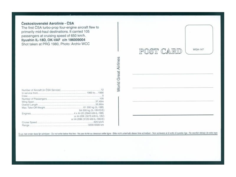World Collector's Cards, historical set 85 years Prague airport 1937-2022, LKPR-046; 5.9''x4.1'' (150x105 mm); new