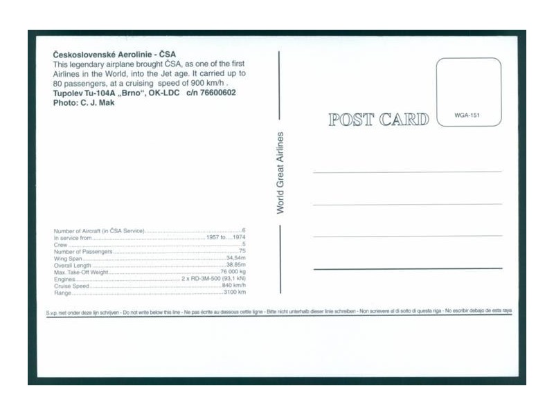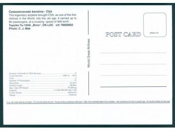 World Great Airlines WGA-207; 5.8''x4.1'' (148x105); new