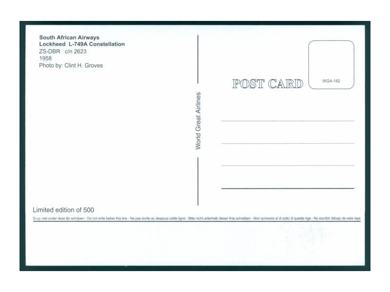 World Great Airlines WGA-823; 5.9''x4.1'' (150x105 mm); new
