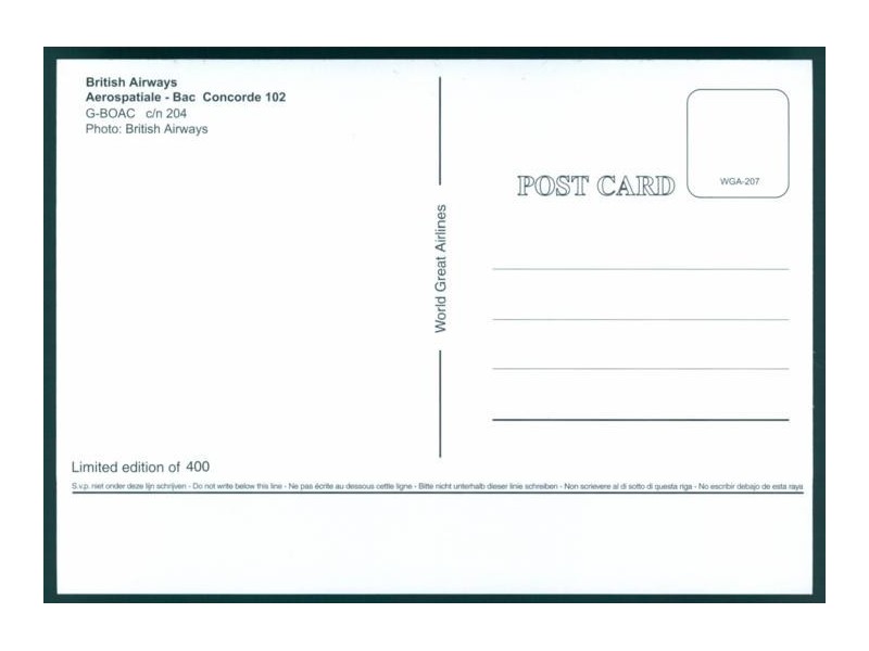World Great Airlines WGA-1622; 5.9''x4.1'' (150x105 mm); new