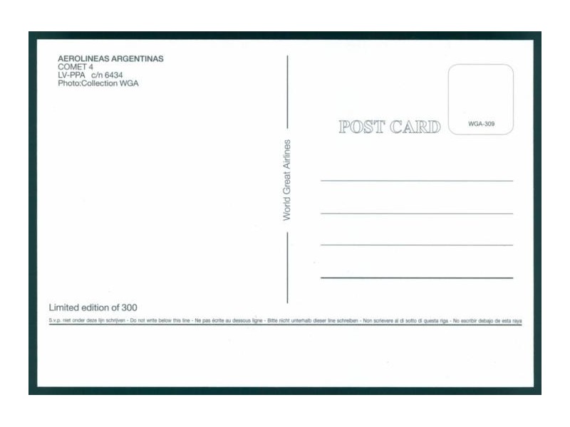Airline Issue; 5.8''x4.1'' (148x105 mm); condition mint