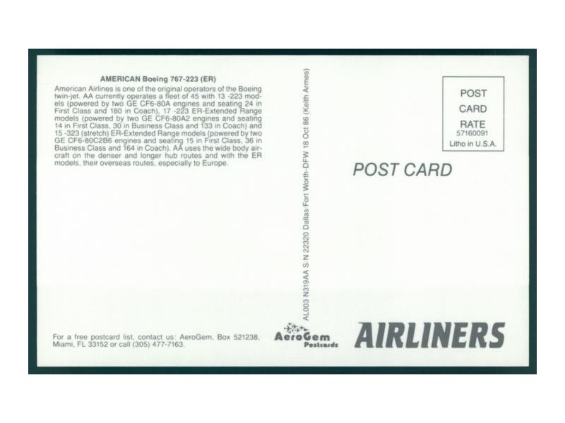 Airline Issue; 5.8''x4.1'' (148x105 mm); condition very good