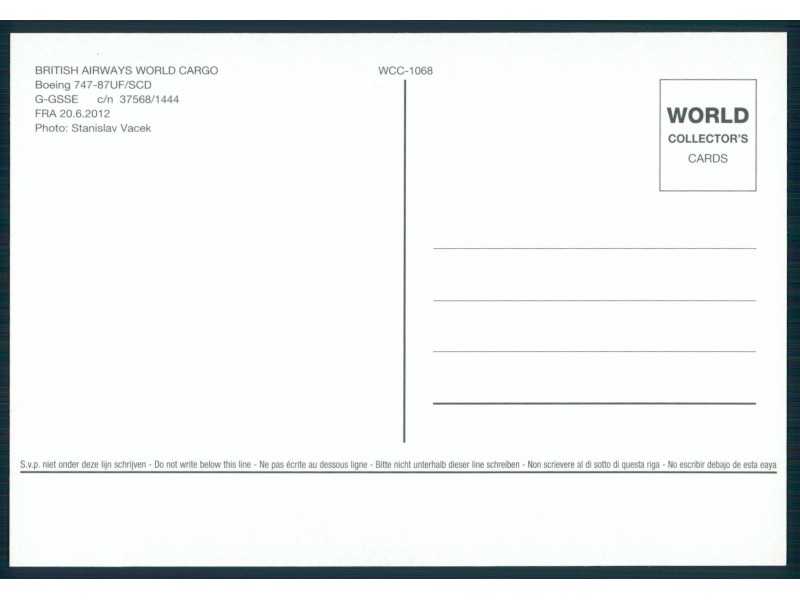 World Collector's Cards WCC-758; 5.8''x4.1'' (148x105); new