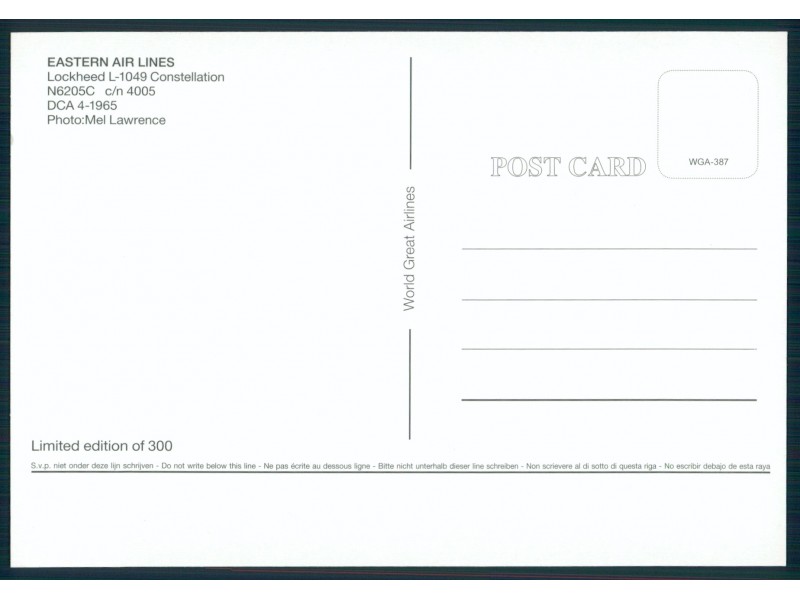 Civil Aircraft Postcards 128; 6''x4'' (152x101); new
