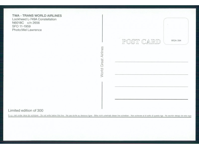 World Great Airlines WGA-1496; 5.8''x4.1'' (148x104 mm); new