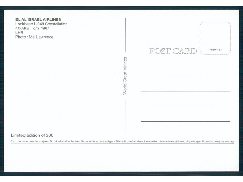 World Great Airlines WGA-765; 5.9''x4.1'' (150x105 mm); new