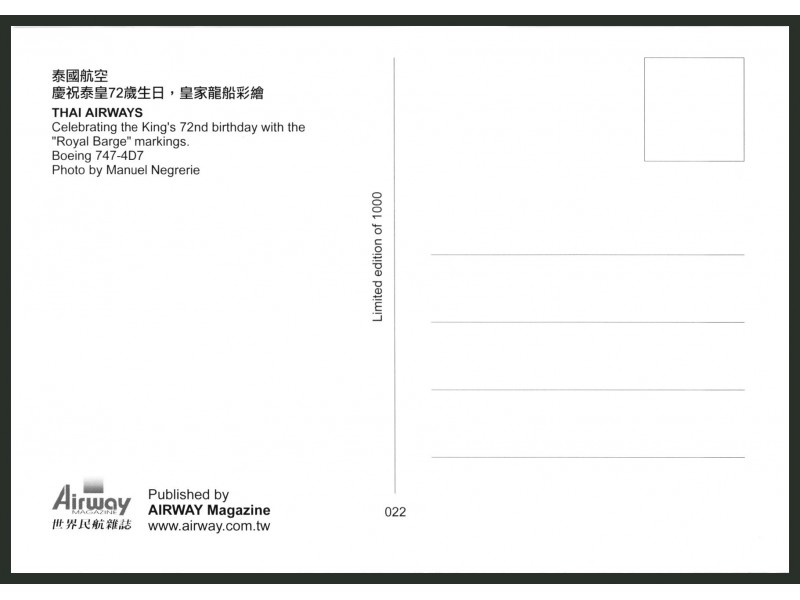 Thai International (King's 72nd Celebration colours); B. 747-4D7, HS-TGJ