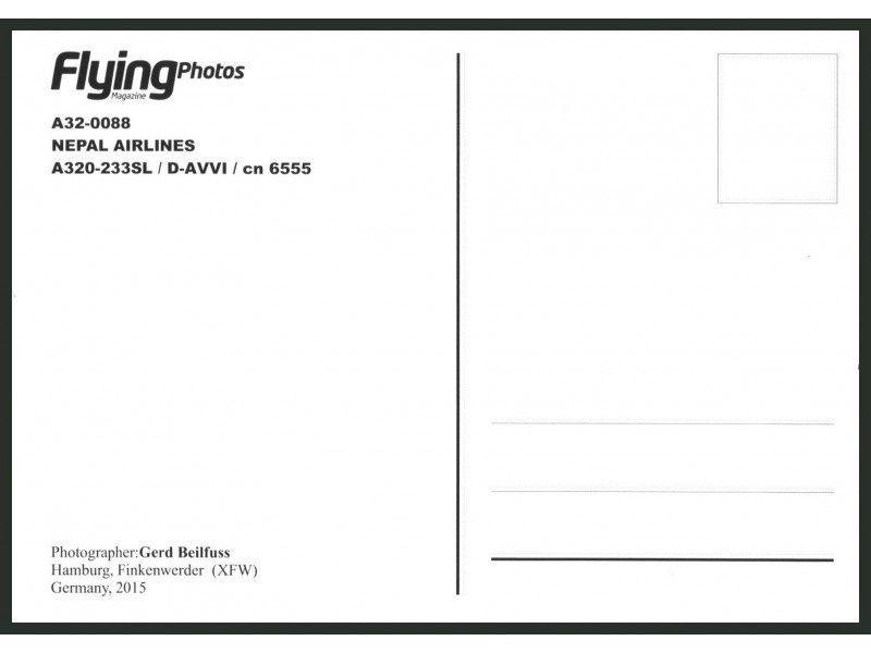 FlyingPhotos A32N-0012; 5.9''x4.1'' (150x105 mm); new