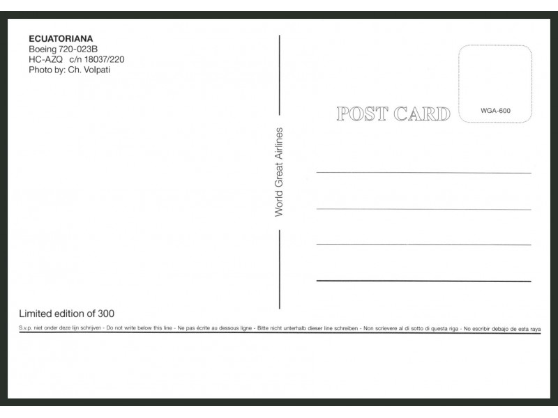 World Great Airlines WGA-552; 5.9''x4.1'' (150x105 mm); new