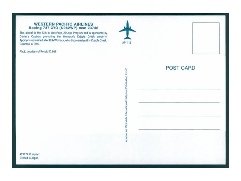 Airline Issue; 5.8''x4.1'' (148x105); mint