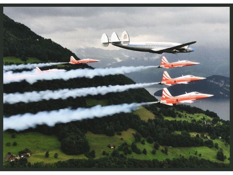 Super Constellation Flyers Ass. - SCFA (Breitling cs), L-1049F Super Constellation (C-121C), HB-RSC; Swiss Air Force - Schweizer Luftwaffe (Patrouille Suisse), Northrop F-5E Tiger II