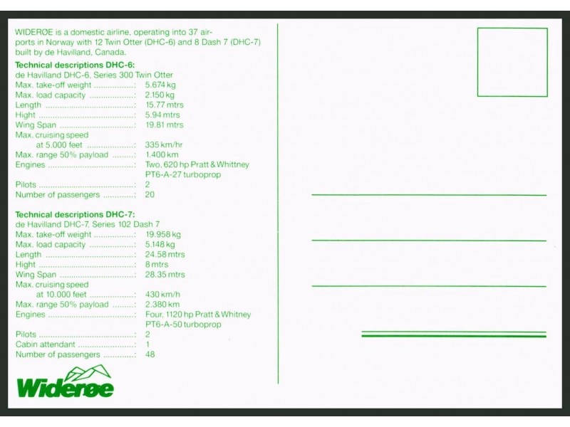 Wideroe; DHC-6-300 Twin Otter, DHC-7, LN-BNB (version 2 - back side with airplane information)