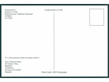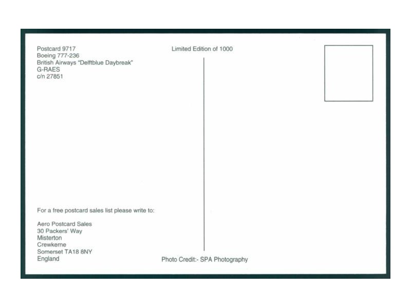 World Great Airlines WGA-308; 5.9''x4.1'' (150x105); new