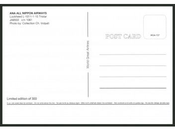 Airline Issue (JAL Fleet Postcard Box, JAL Brand Communications), no. 62/100; 5.8''x3.7'' (148x95 mm); new