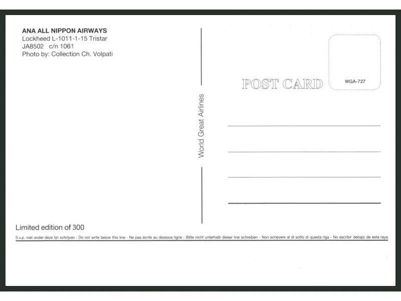 World Great Airlines WGA-1078; 5.8''x4.1'' (148x105 mm); new
