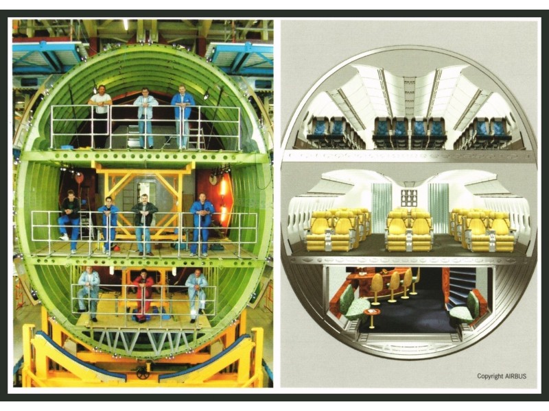 Airbus Industries; A380, cut interior of cabin and freight compartment