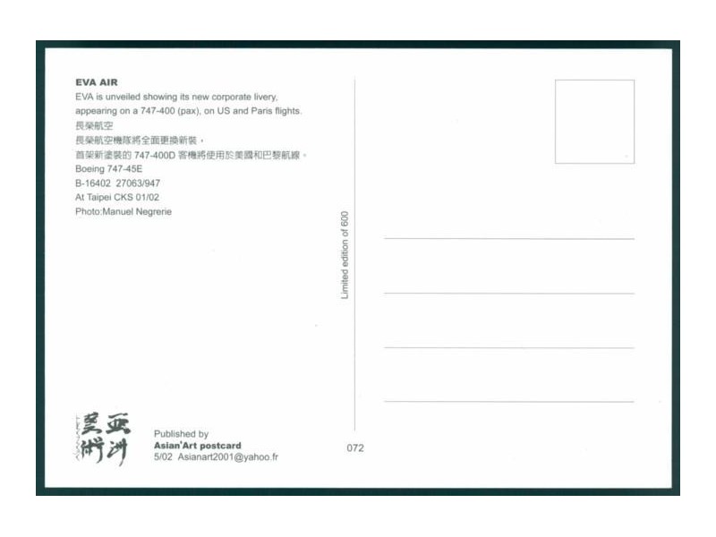 Aviation World B-071 / 96947-D; 5.5''x3.5'' (140x89); new