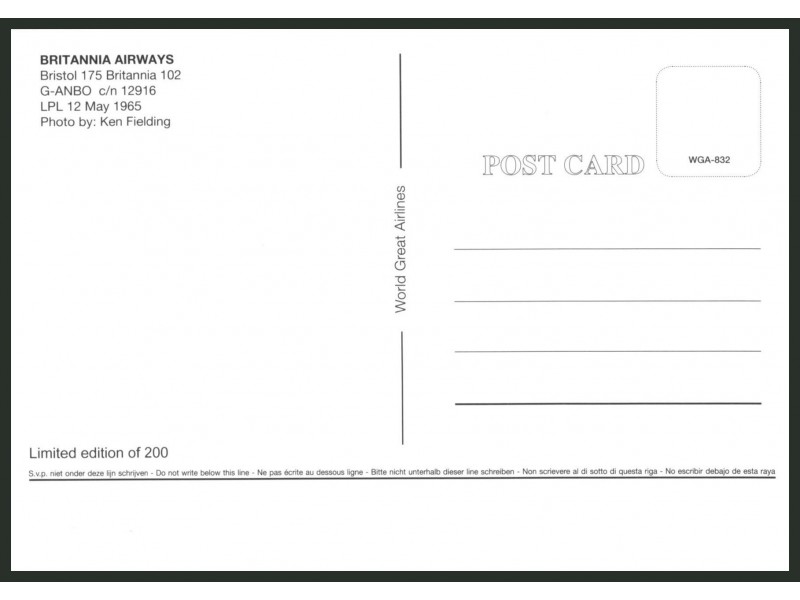 World Great Airlines WGA-538; 5.9''x4.1'' (150x105 mm); new